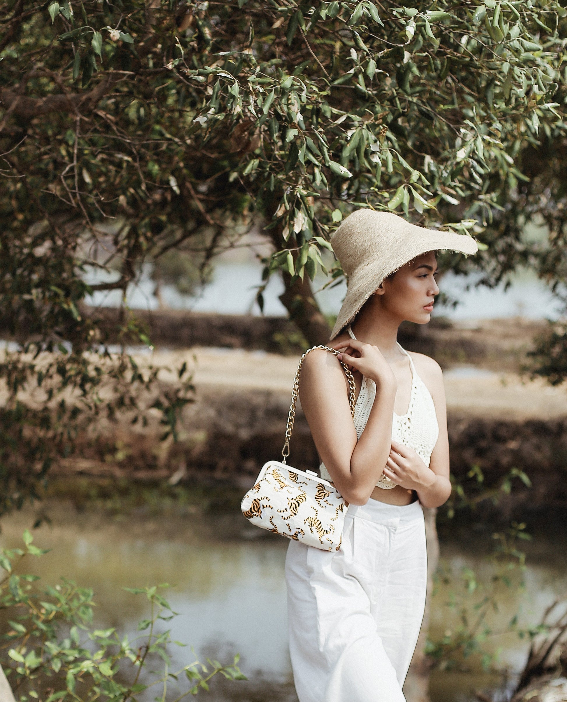 This clutch is our exclusive collection to shine the light to Indonesia's Sumatran tiger, one of the world's critically endangered animals. According to WWF, there are only fewer than 400 Sumatran tigers left and if deforestation & poaching action continues, Sumatran tiger could be the first large predator to go extinct in the 21st century.